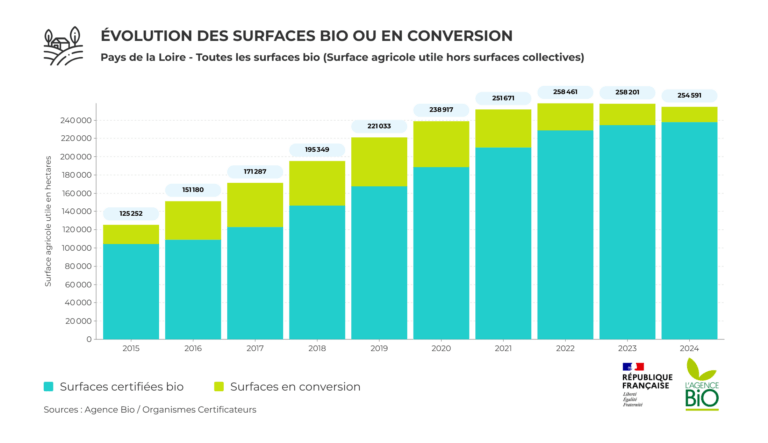 La CAB travaille sur les chiffres de la bio en Pays de la Loire avec plusieurs partenaires : Interbio, la Chambre régionale d’agriculture. Toutes les données chiffrées sont issues de l’Agence Bio. Des études régionales sont annuellement réalisées à l’échelle de la région.