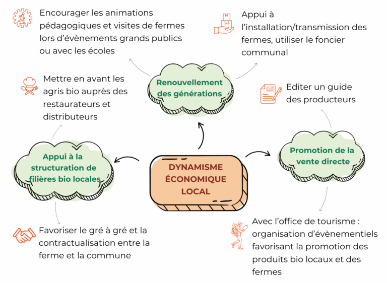 En mettant en relation les agriculteurs bio du territoire avec les restaurateurs, artisans des métiers de bouche et distributeurs, la commune joue un rôle actif dans le développement de circuits courts durables. En facilitant ces synergies, la commune contribue à structurer une filière alimentaire locale cohérente, créatrice de valeur et d’emplois, tout en affirmant son engagement en faveur de la transition écologique.